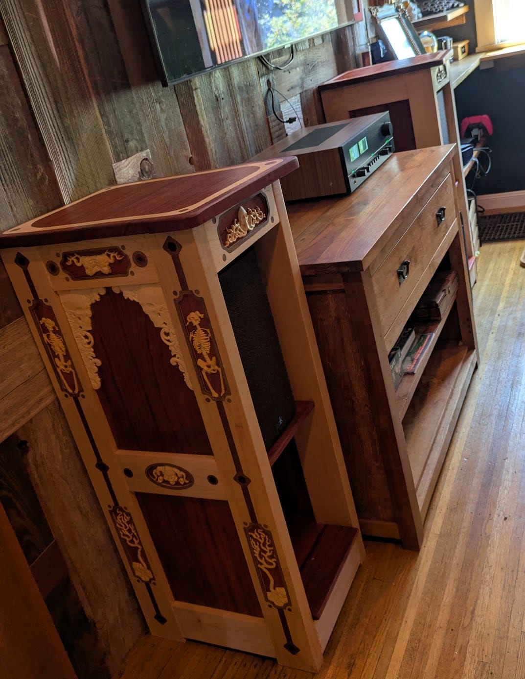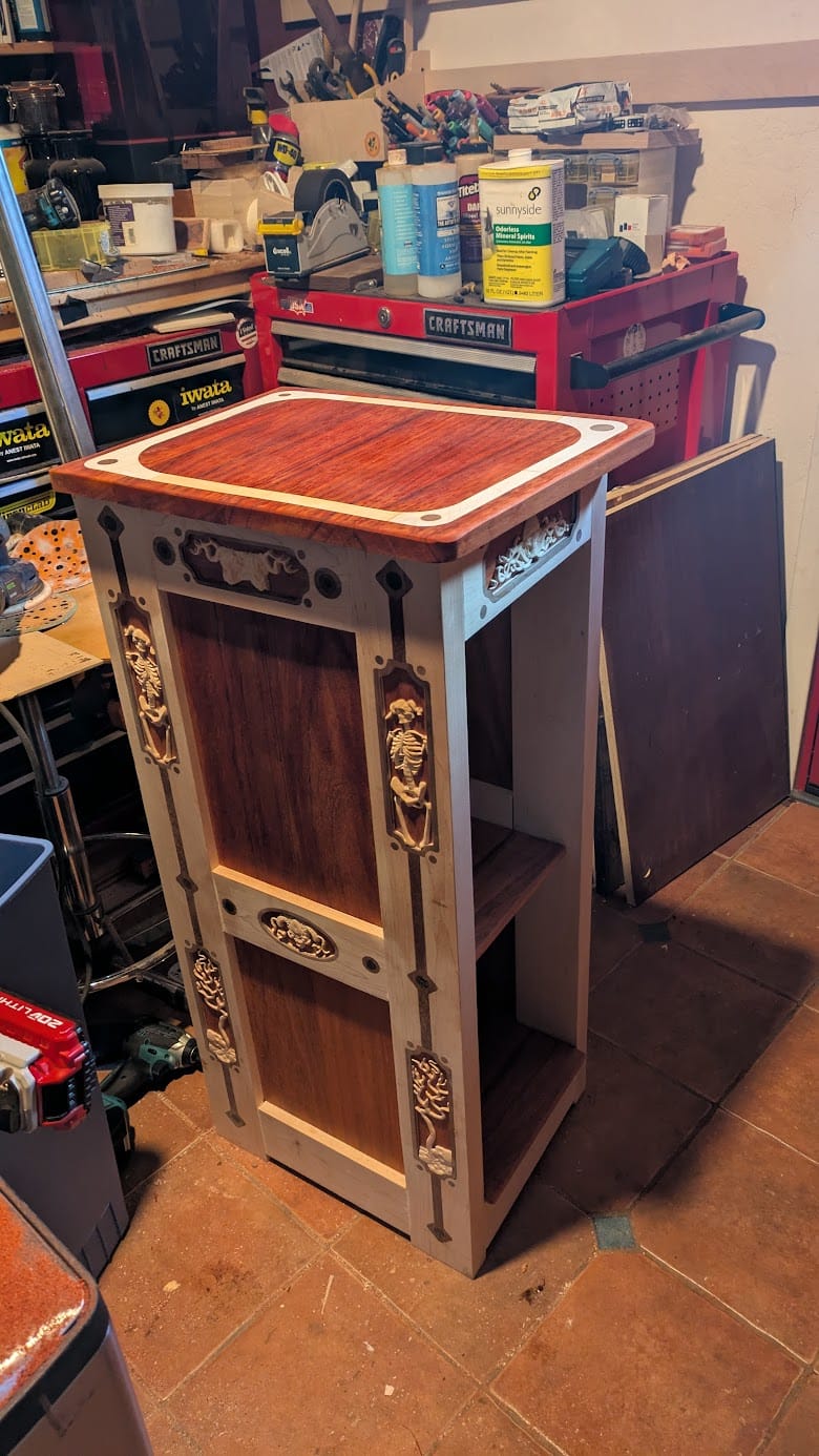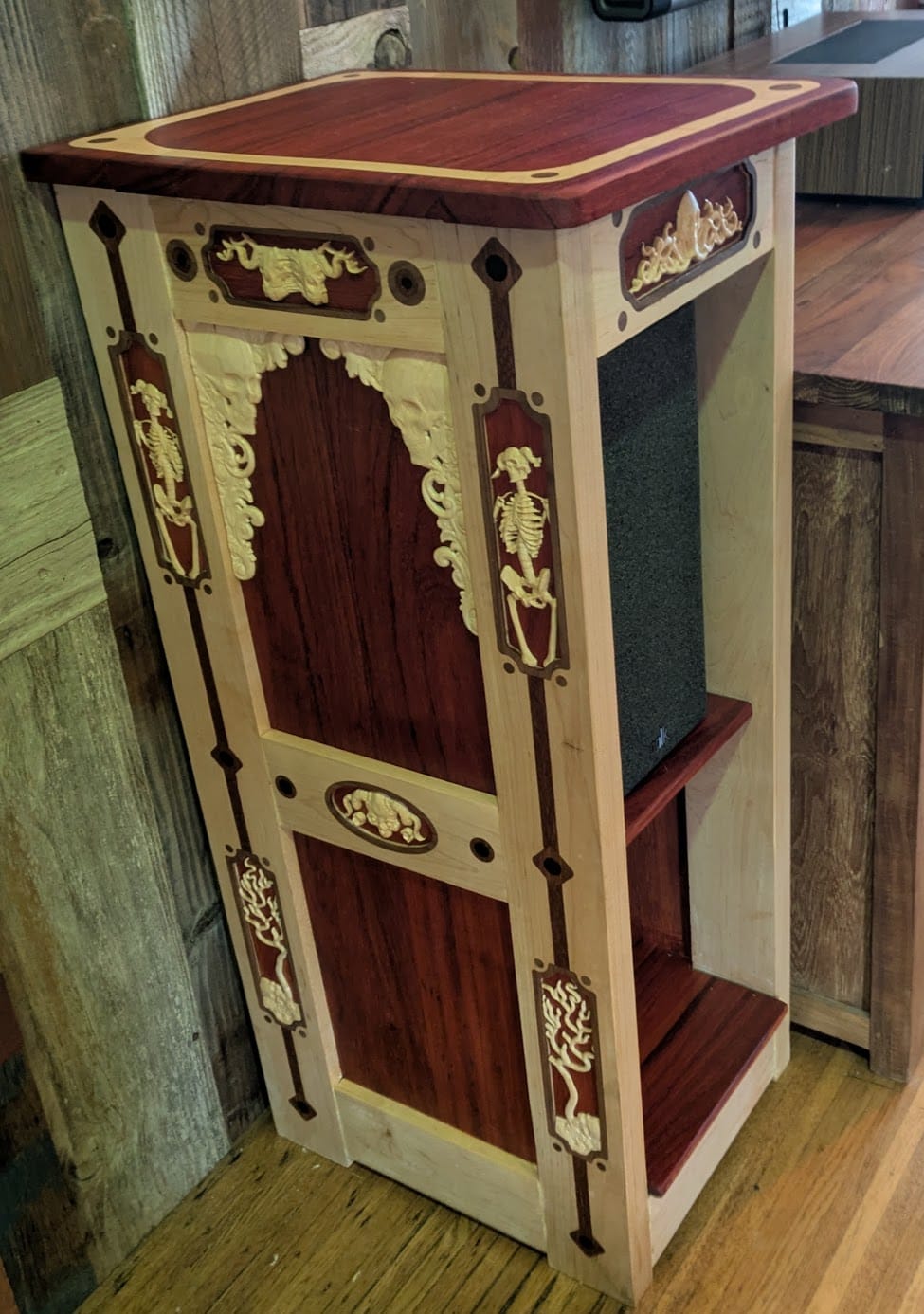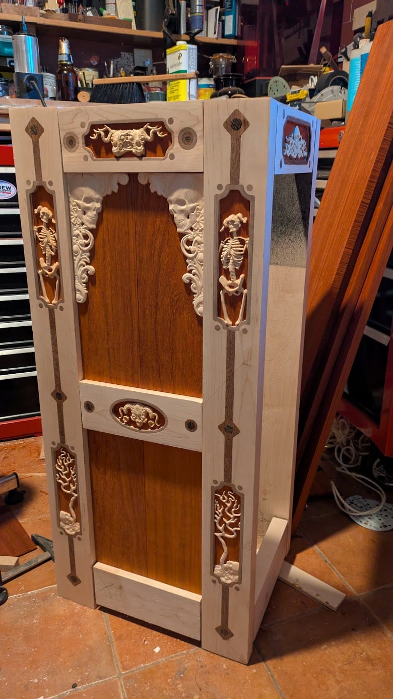 This is a pair of cabinets I built as part of a console unit for my living room. They are cabinets to hold speakers. For this piece I sculpted the carvings in Zbrush, and then used a Makera Carvera CNC machine to carve them into laminated wood. Below is a breakdown of the process for building this.