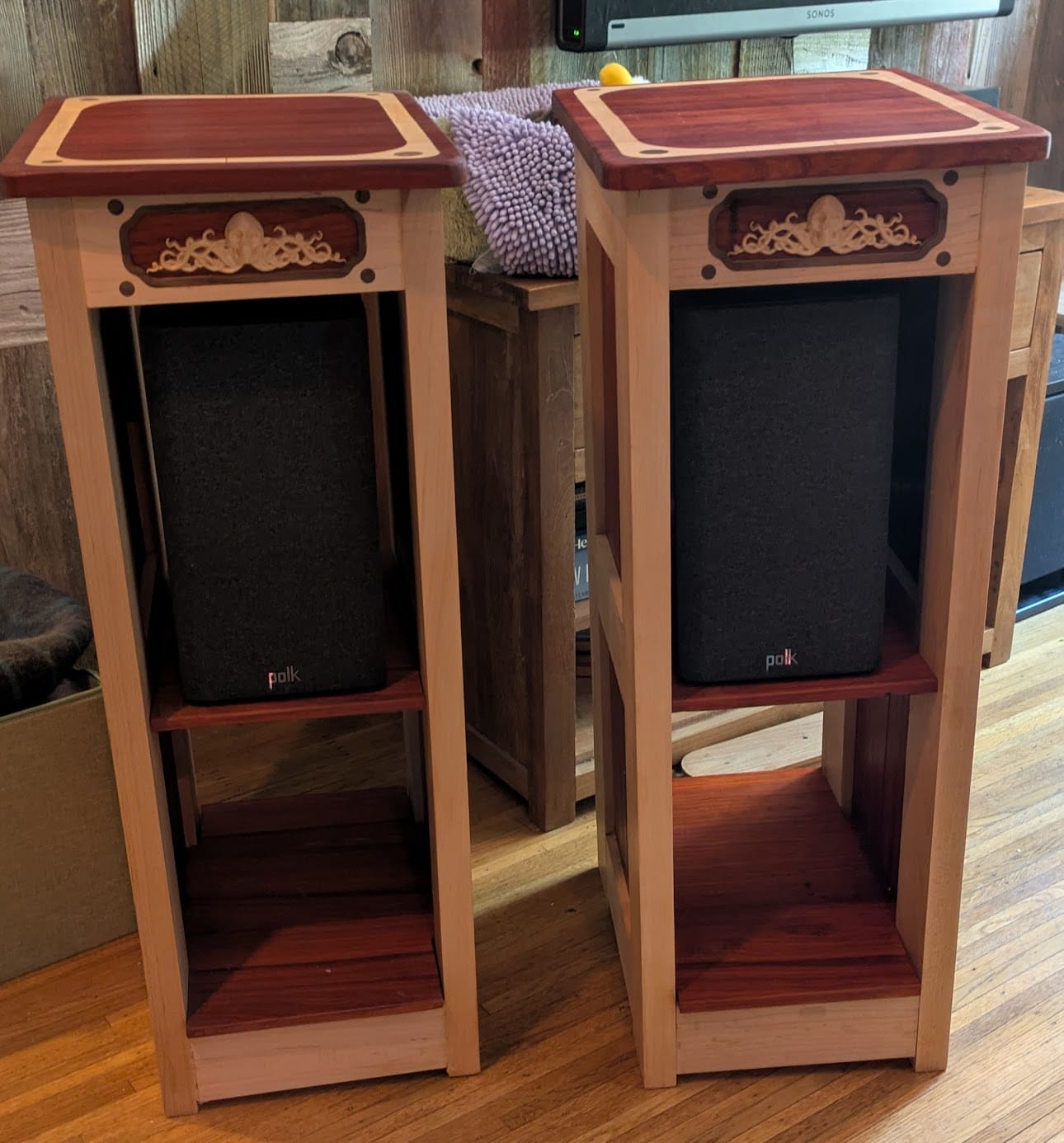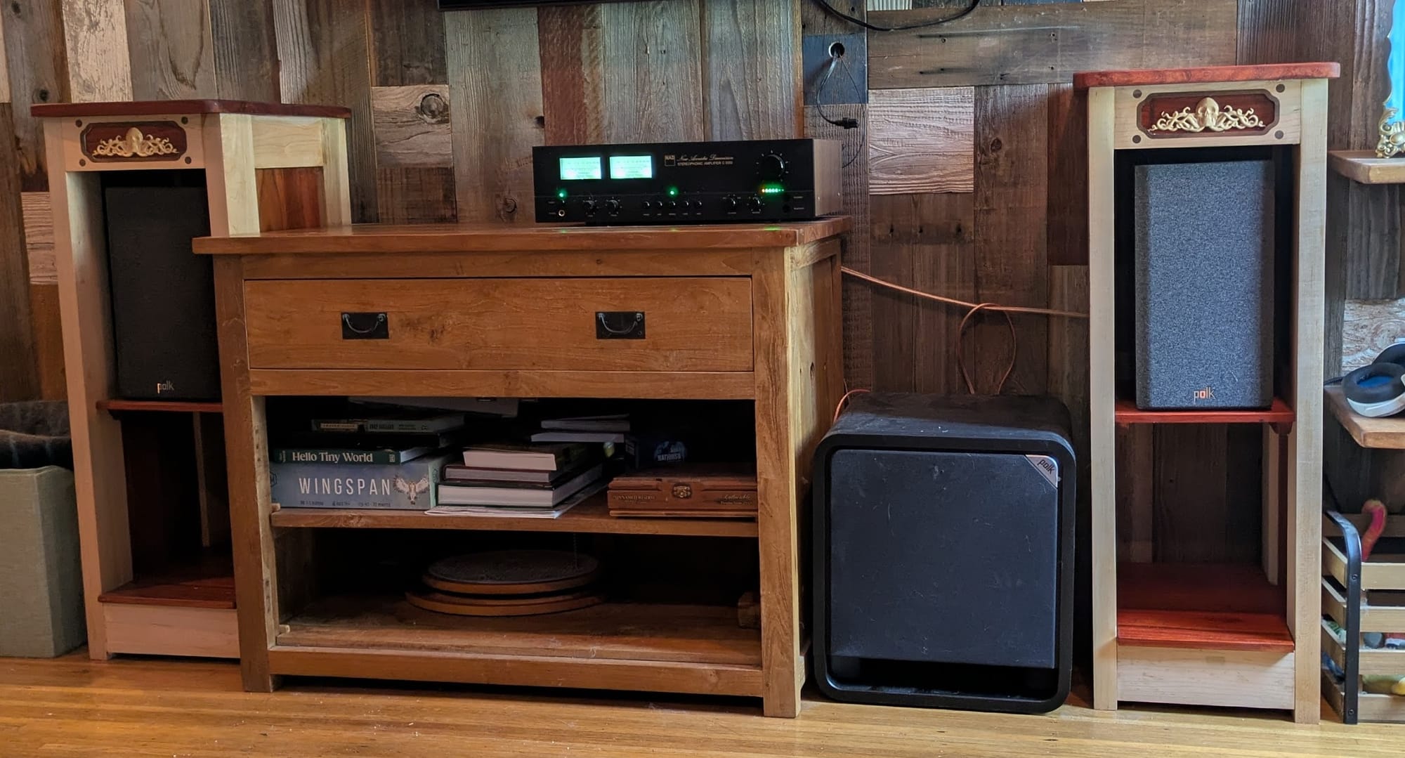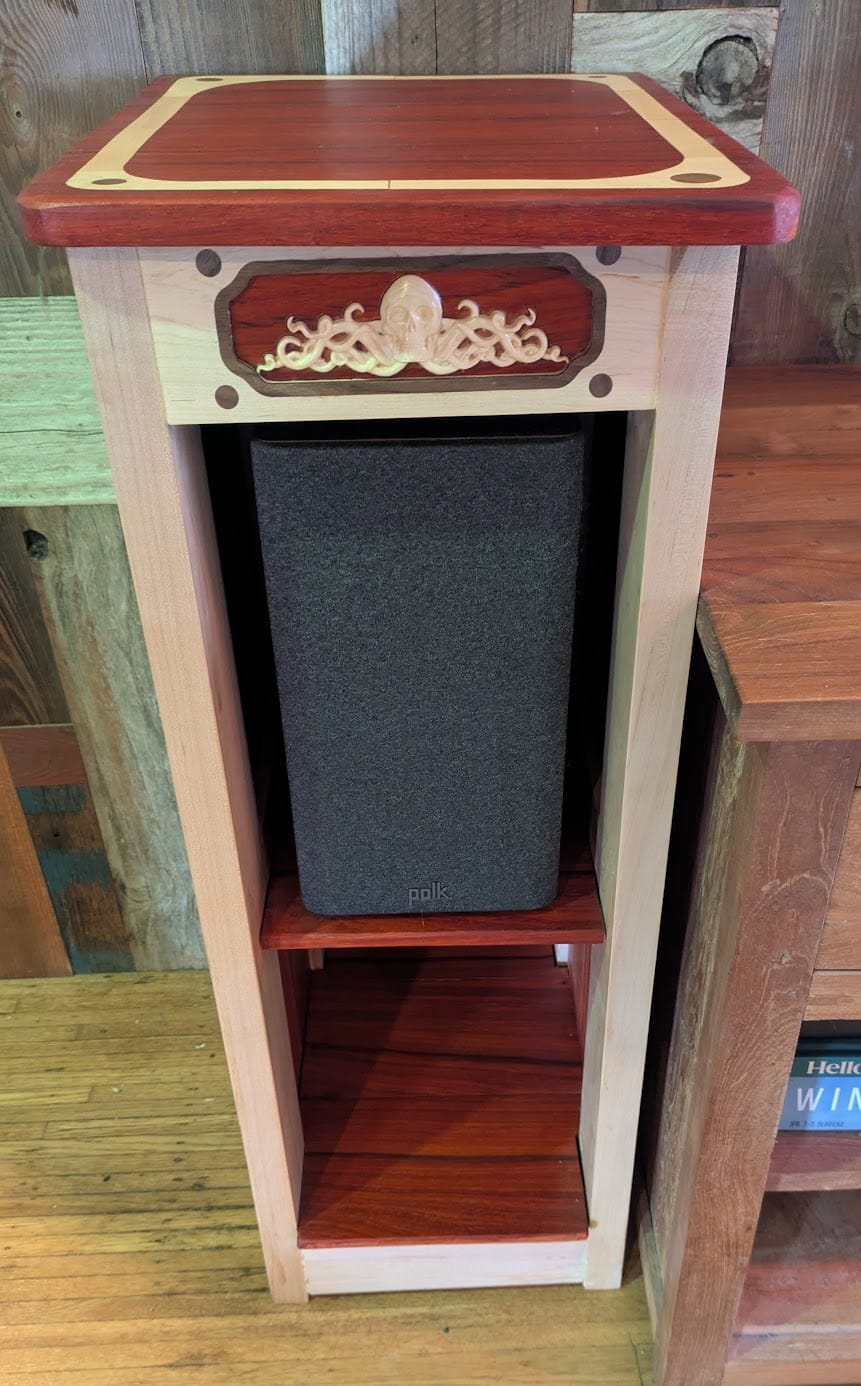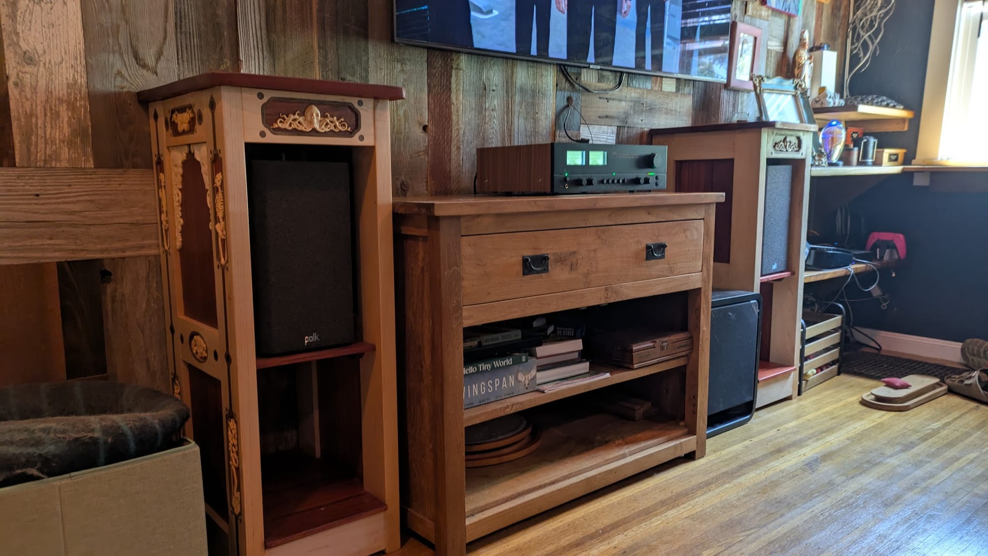 This is a pair of cabinets I built as part of a console unit for my living room. They are cabinets to hold speakers. For this piece I sculpted the carvings in Zbrush, and then used a Makera Carvera CNC machine to carve them into laminated wood. Below is a breakdown of the process for building this.