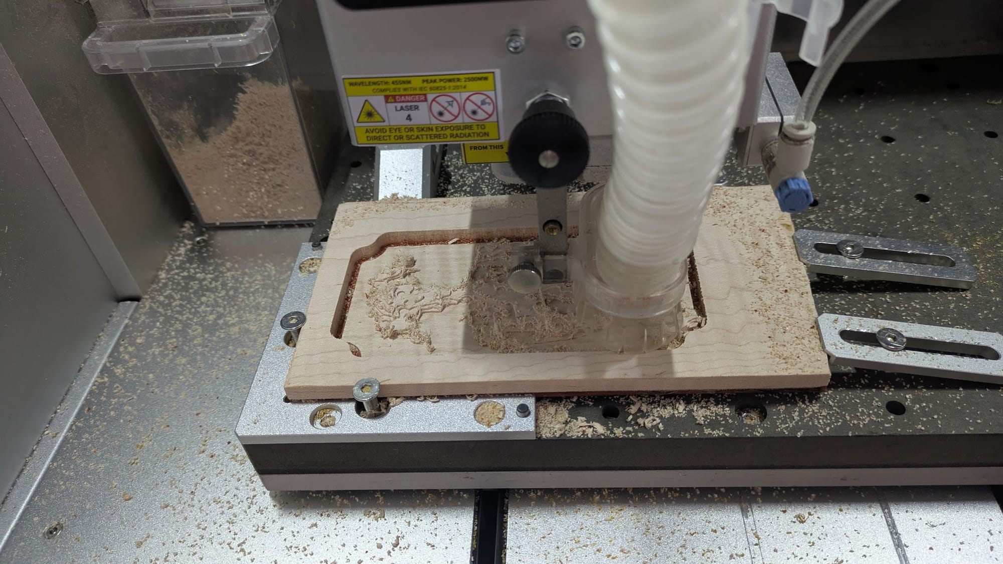 Which brings me to the last part - if I'm doing a particular inlay for the first time, I always cut the pocket with 0 off-set. I then test fit the pieces. This is almost always too tight, but you want to "sneak-up" on the right offset to get it perfect. So if it is too tight, I then try an offset of -0.001 inches. Test again, if it is too tight move to -0.002 inches. This is almost always the sweet spot. The inlay should just need a little tapping with a rubber mallet to fit into place.