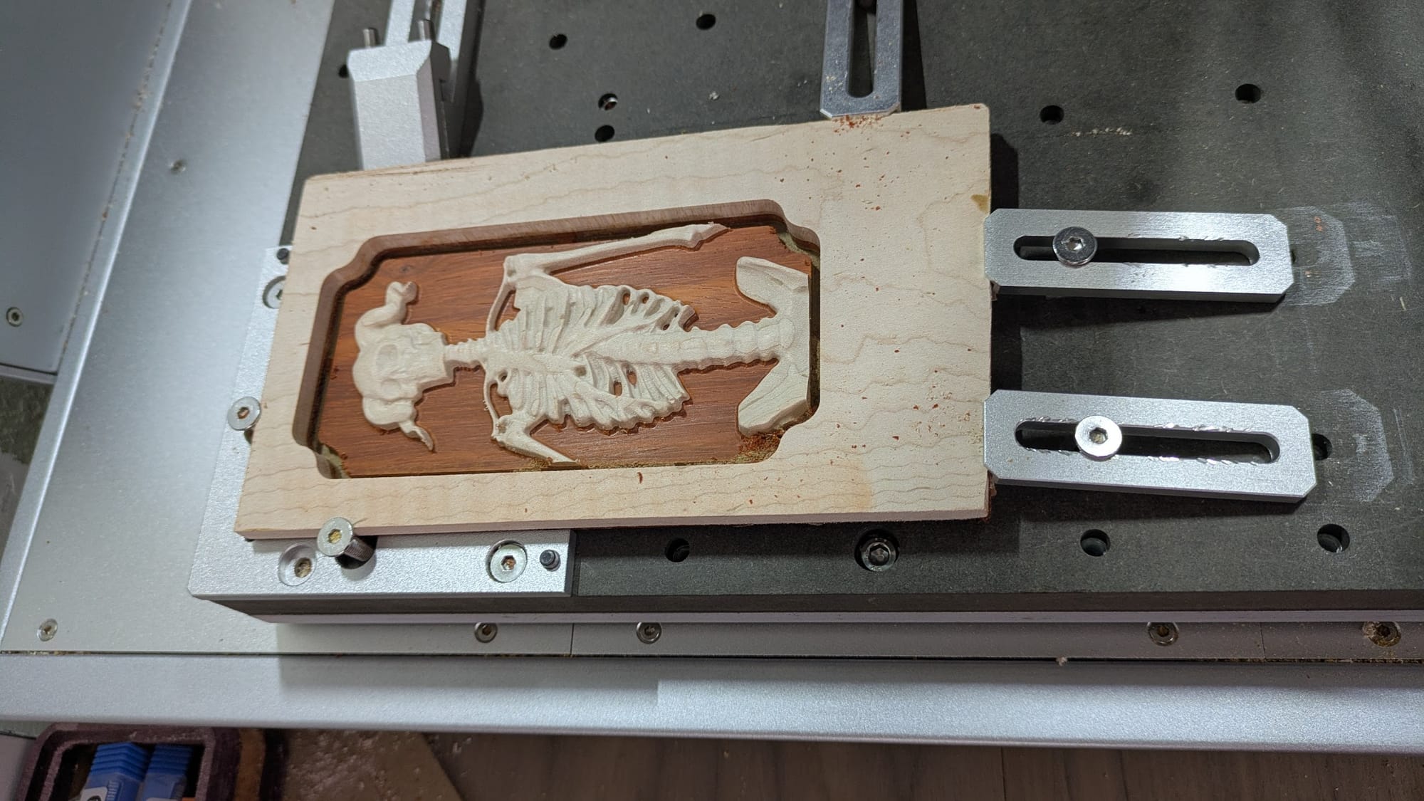Next I use a 2mm ball-end bit with 0.1mm or 5% step-over for the finishing pass. This combination consistently gives me very high quality results that require almost no post-finishing work on the carving.