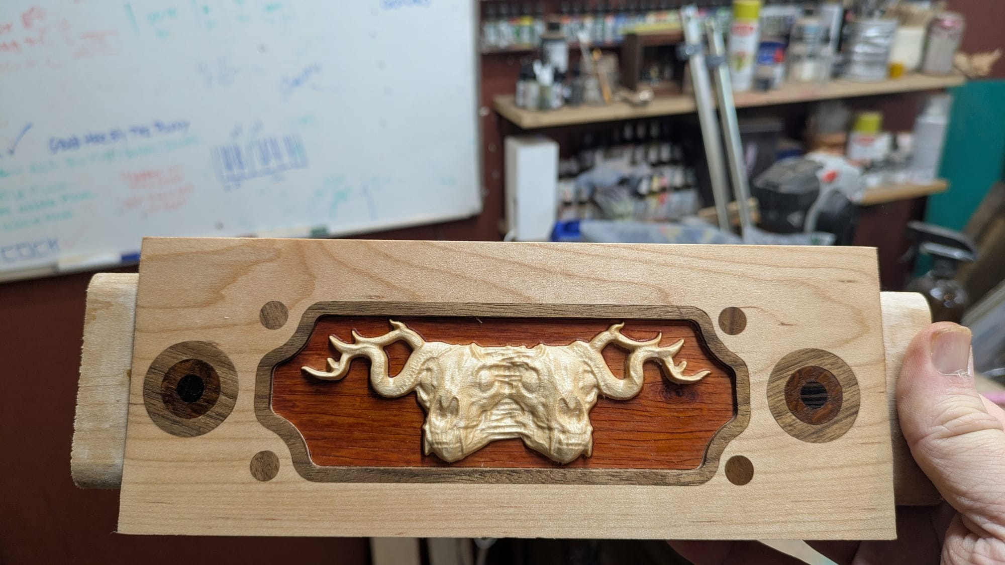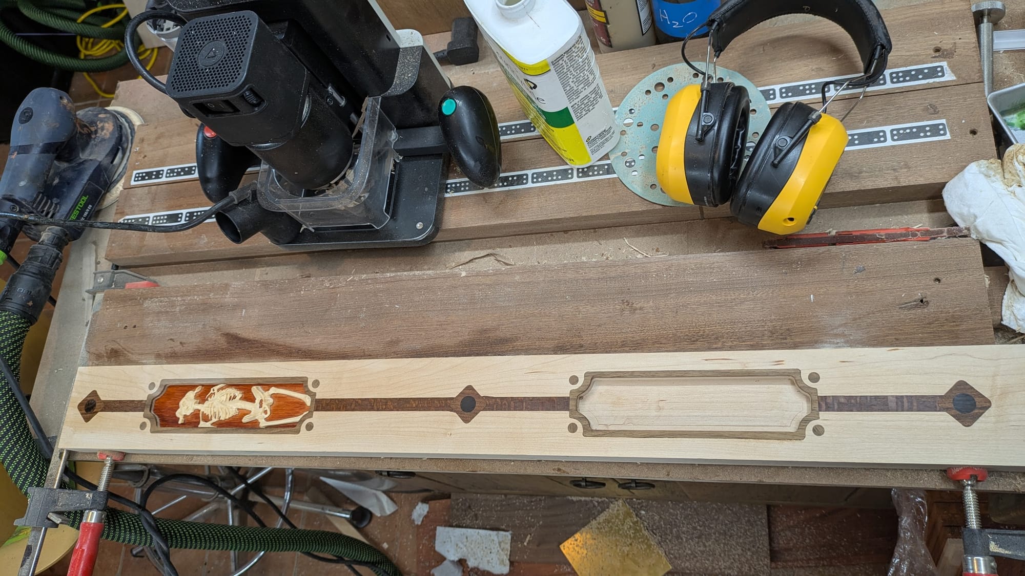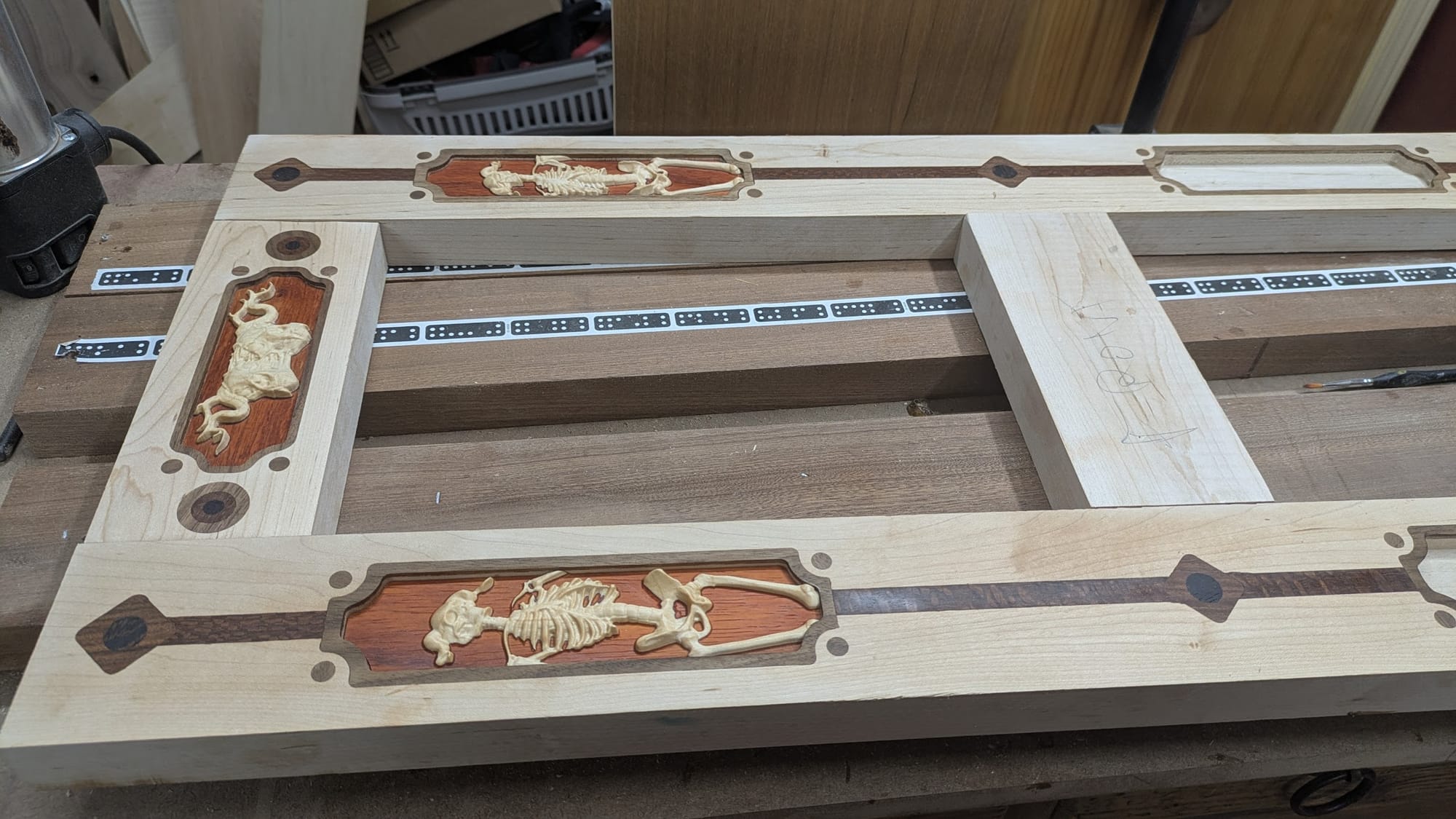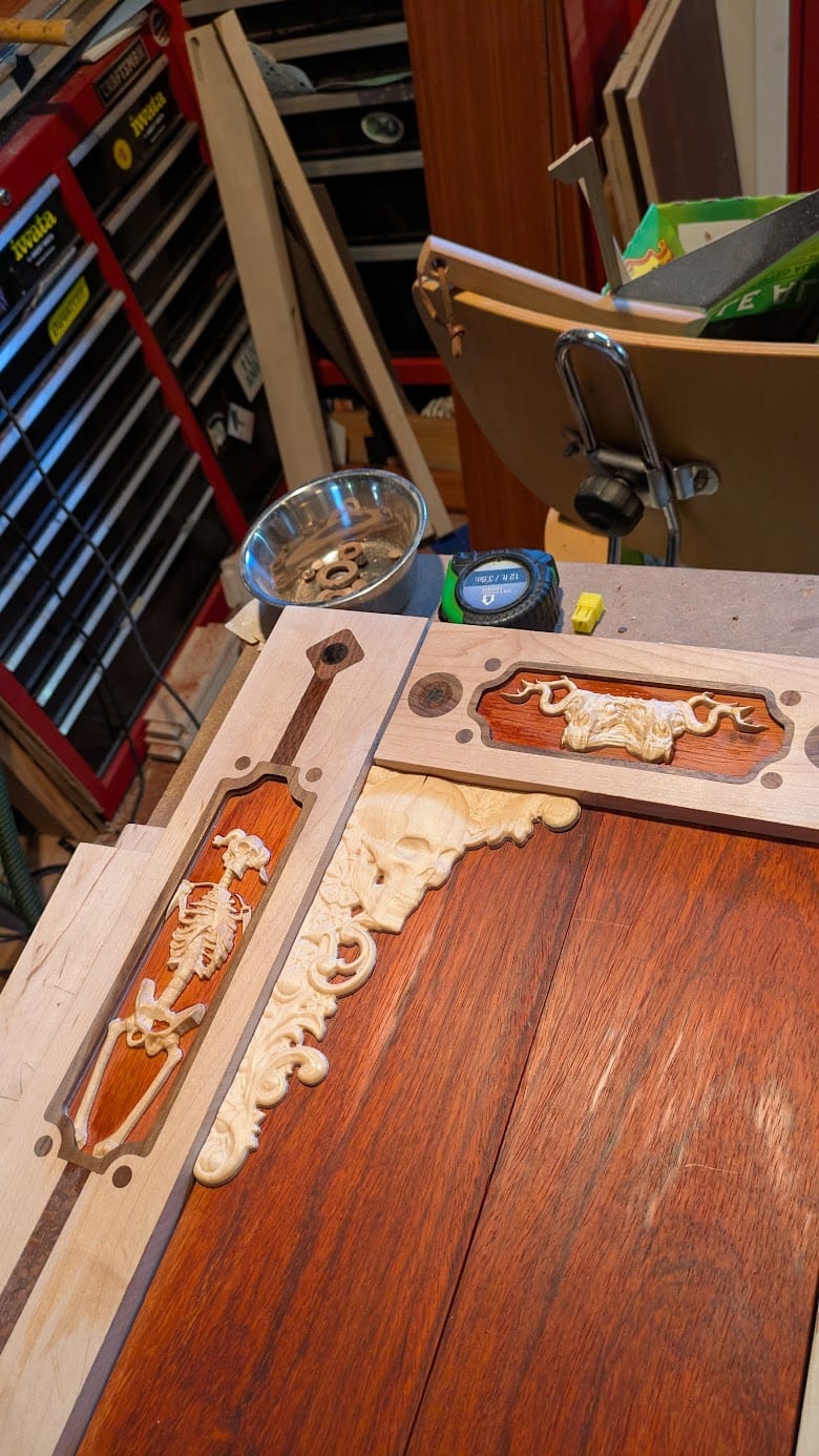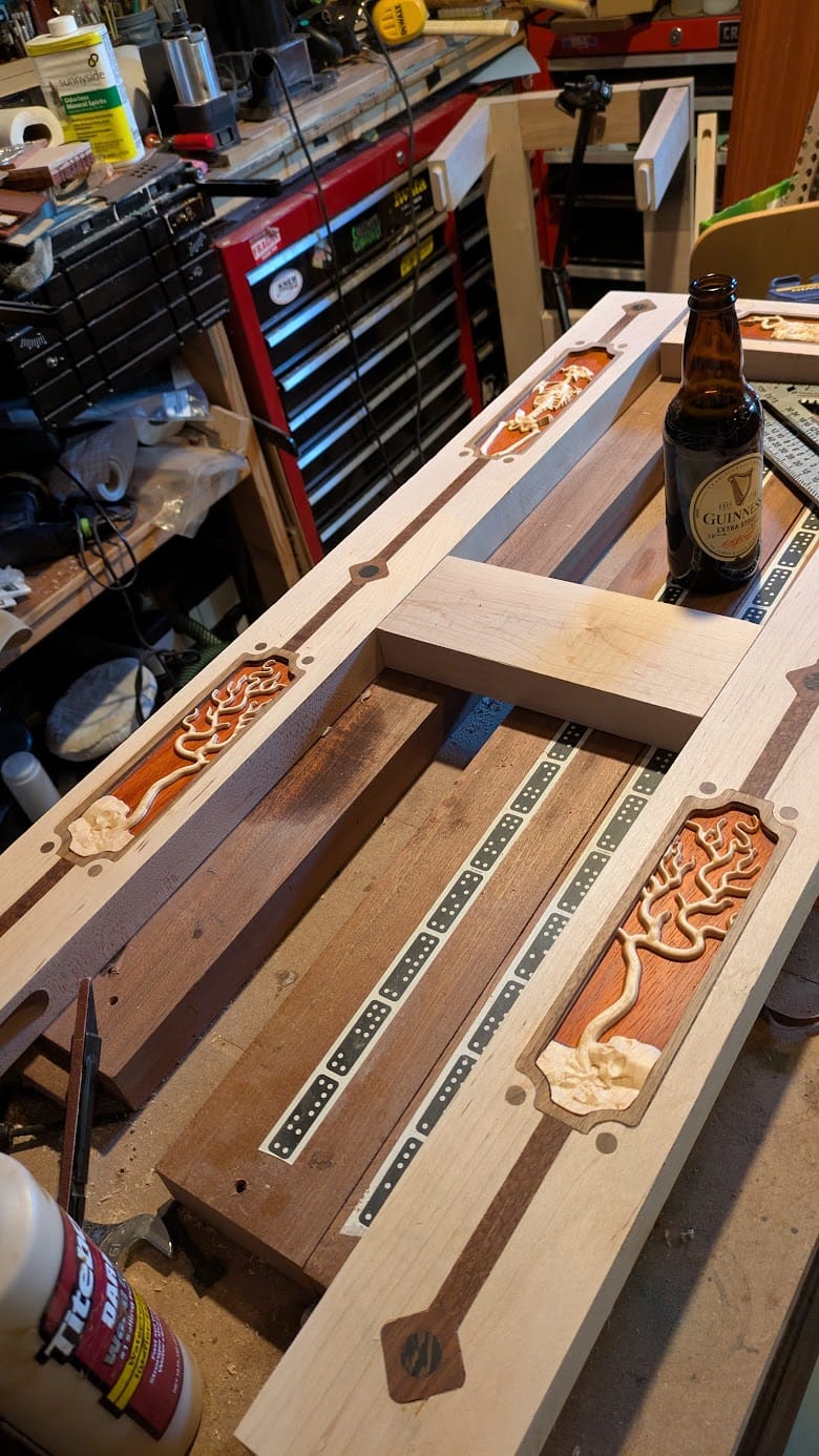 The rest is pretty straight forward, just setting the carvings into the inlay. and gluing up all the pieces