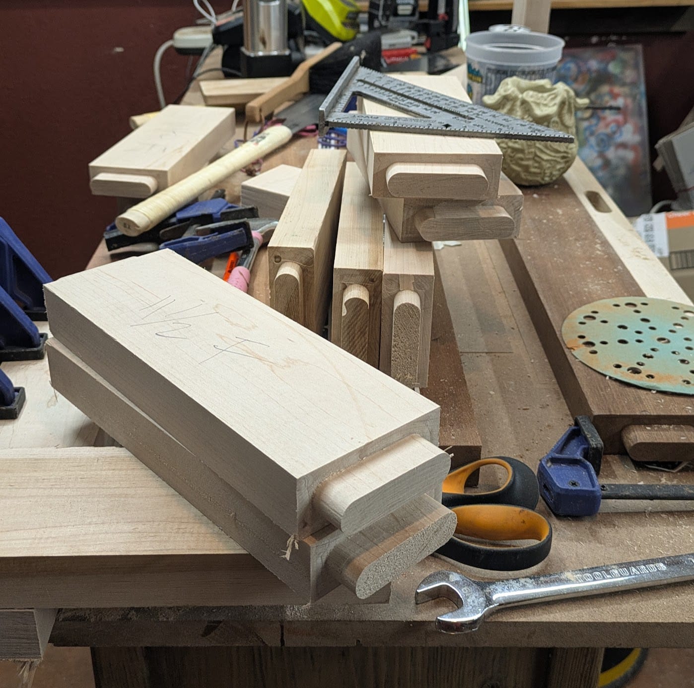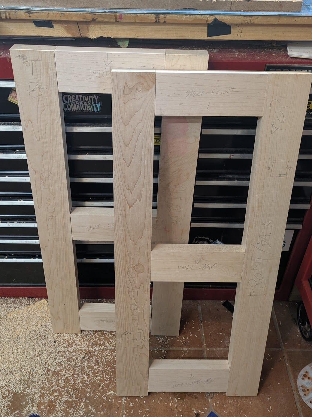 For this project I used Mortise and Tenon Joinery which I created using a Shaper Origin. I have a very small shop without a lot traditional power tools like table saws and joiners, so I typically buy wood that is mostly ready to go. Anything I need to cut, I use Japanese pull saws. Below you can see some of the steps of building the frames